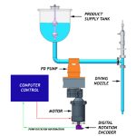 - Mesin yang menggunakan prinsip pengisian pam juga sesuai untuk produk yang lebih tebal dan lebih likat. Jenis pam yang digunakan akan bergantung pada produk dan pengisian yang telah siap, dengan banyak pilihan yang ada. Sebagai contoh, pam gear boleh digunakan untuk menggerakkan produk berdasarkan tepat pada waktunya atau pada giliran gear (berdasarkan nadi). Pam peristaltik menggunakan penggelek yang membolehkan produk dipam tanpa bersentuhan dengan komponen pam, hanya tiub, yang menjadikan pam ini sesuai untuk proses farmasi dan beberapa makanan atau rasa.
